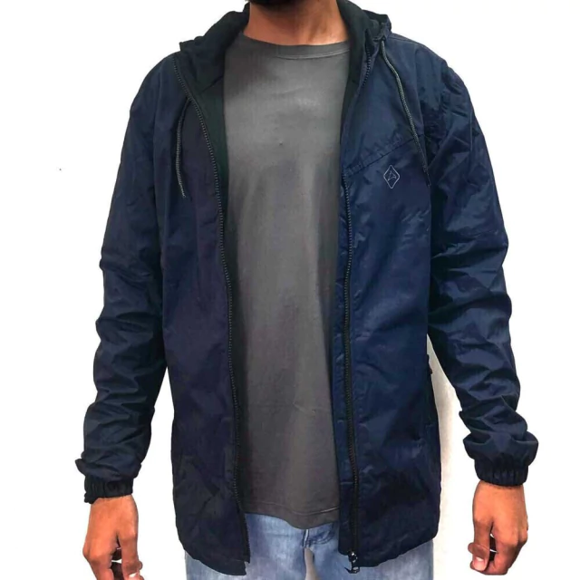 Possui capuz com regulagem frontal. Bolsos laterais, todos com zíperes, e proteções no zíper para este não incomodar o pescoço. O zíper principal ainda possui lapela interna para evitar a entrada de água quando há chuva com vento.