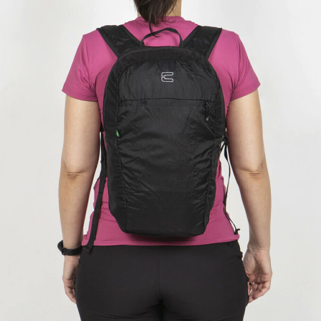 | Dados Técnicos | Mochila de 14L em confeccionada em Nylon Rip Stop 95 com acabamento de hidrorrepelente que o torna resistente à água; Compartimento principal com fechamento em zíper invertido; Bolso interno para pequenos objetos que acomoda a própria mochila quando fora de uso, tornando-a compacta; Alças anatômicas revestidas com tecido Dry System® para absorção de suor; Bolso frontal para pequenos objetos; Puxador do zíper com etiqueta personalizada; Alça de mão. |