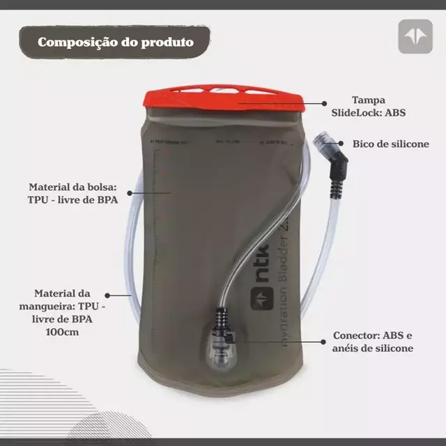 O Reservatório de Hidratação NTK Hidrabag 2.0L é perfeito para quem busca praticidade e desempenho durante atividades ao ar livre. Com capacidade para 2 litros e fechamento estilo SlideLock, é ideal para corredores, ciclistas e aventureiros que precisam manter-se hidratados sem interromper o ritmo.